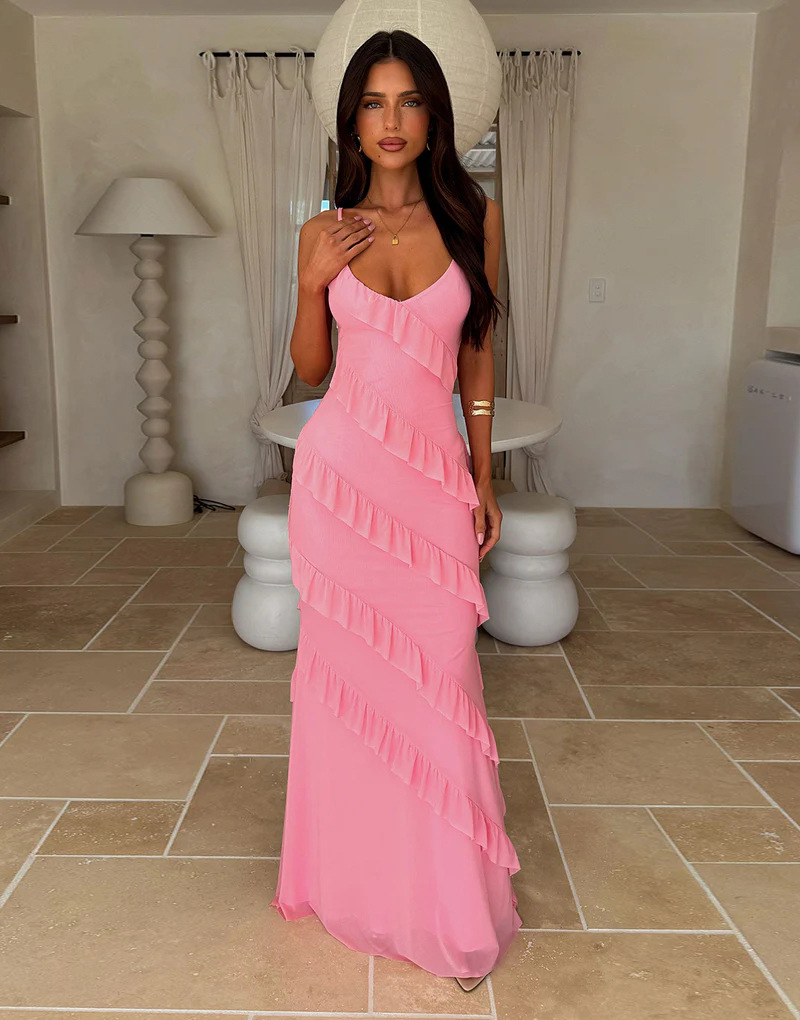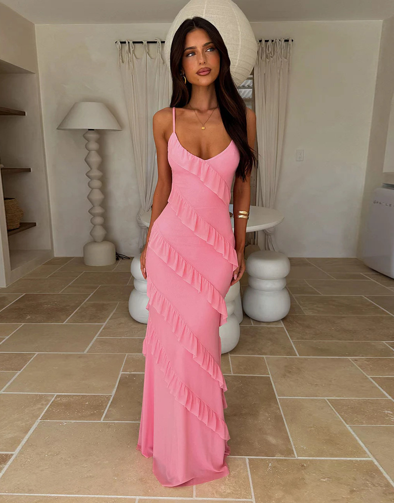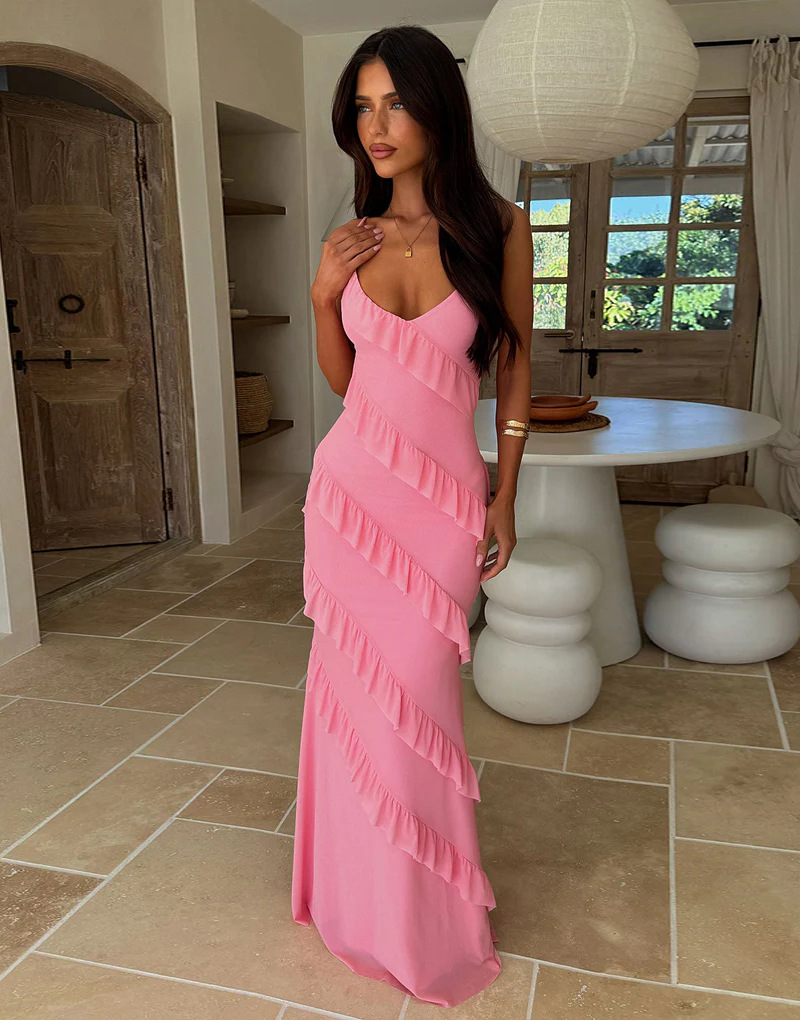 Backless Spaghetti-strap V-neck Dress With Side Slits