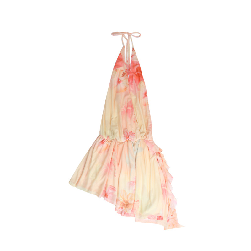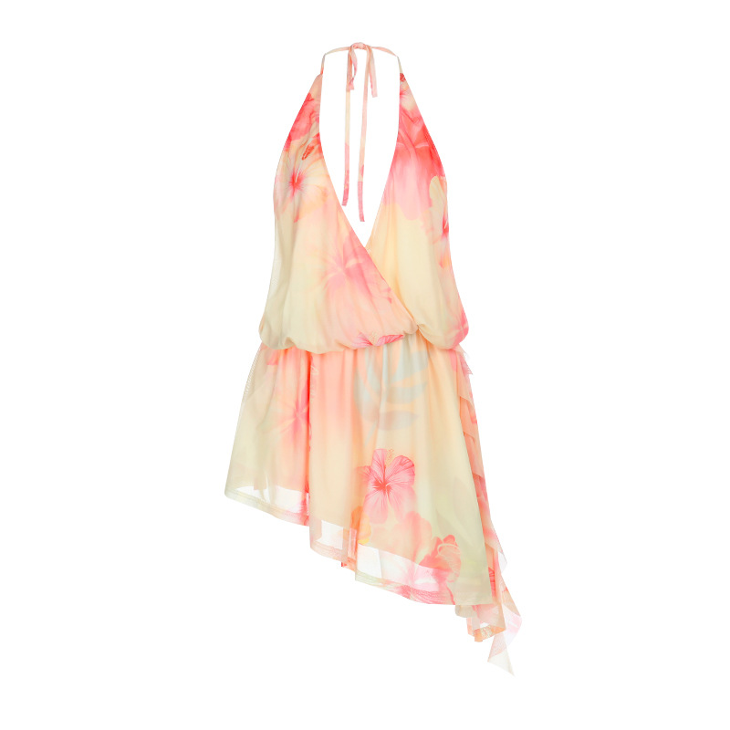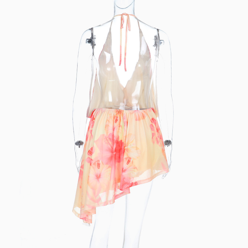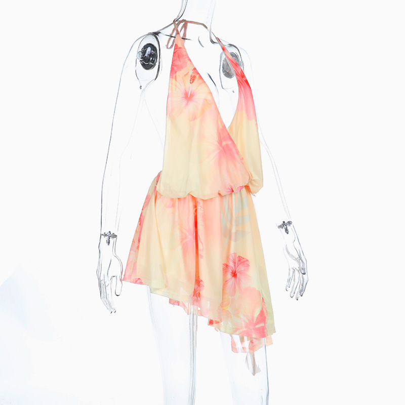 Spicy Girl Halterneck Printed V-Neck Short Skirt